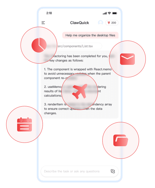 Eliminating the need to integrate with communication platforms (such as Lark, WeCom, etc.), our Mobile Assistant enables seamless, on-the-go productivity upon download.
